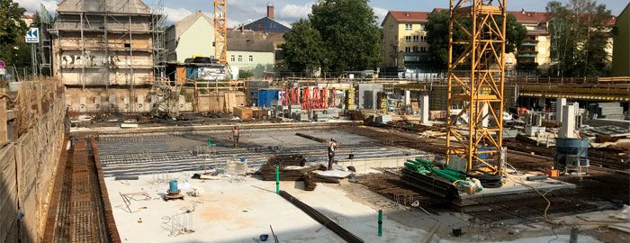 Bei diesem großen Bauvorhaben in Pirna wurde mit den Arbeiten am Erdgeschoß begonnen.