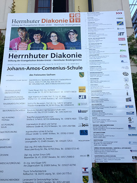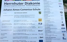 Nach nur 5 Monaten Bauzeit feierte am 10.09.2015 die Herrnhuter Diakonie gemeinsam mit den Bauleuten und einigen Schülern das Richtfest des Schulneubaus der Amon-Comenius-Schule. Nach dem Setzen der Richtkrone wurde der letzte Sparrennagel durch den Schulleiter Hr. Böwing eingeschlagen.