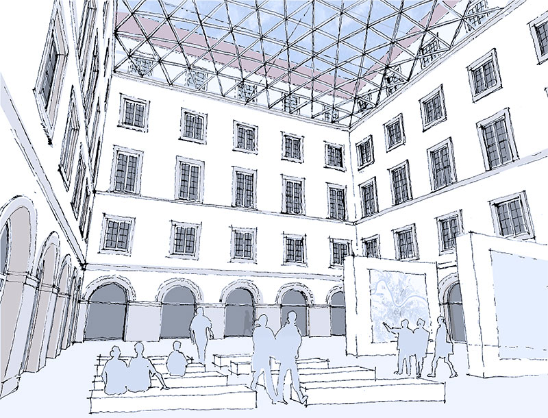 Während des Erneuerungsprozesses soll eine der Nutzung angemessene Ausstattung und Innenraumgestaltung verwirklicht werden. Diese orientiert sich stark an der denkmalpflegerischen Zielsetzung, die Aufbauleistung während der 1950er Jahre nach der Zerstörung im 2. Weltkrieg zu würdigen.