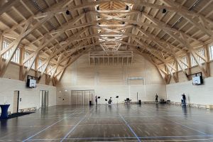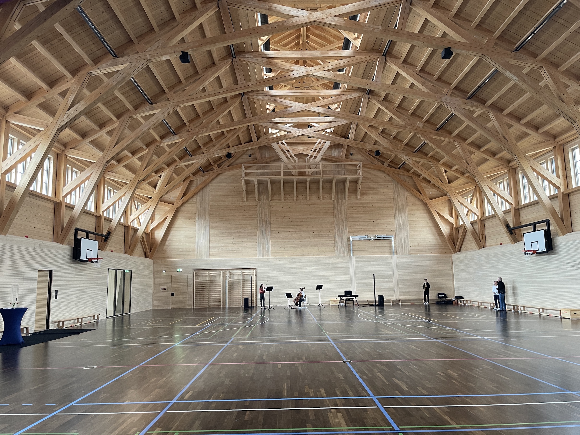 Am 25.04.2023 fand die Weihe der Sporthalle des evangelischen Zinzendorf-Gymnasiums in Herrnhut statt. Das einzigartige Bauwerk wurde in einer über Dach und Wände spannenden Fachwerkkonstruktion ausgeführt und unter Beachtung der strengen BNB-Goldkriterien geplant und errichtet. So wurde für die Konstruktion Vollholz statt geleimter Holzprodukte und – wie beim Schulgebäude – Lehmziegel für nichttragende Innenwände eingesetzt. Die Sporthalle lässt sich durch einen Vorhang in zwei Teile separieren, dies ermöglicht den parallelen Unterricht für zwei Gruppen.