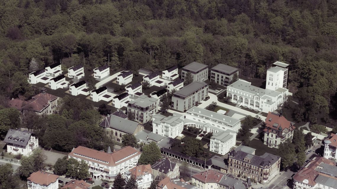 Im Jahr 2010 erwarb die Baywobau Bauträger AG das 2,7 Hektar umfassende Areal mit dem Ziel, ein Wohngebiet mit hochwertigen Eigentumswohnungen einerseits durch Substanzerhalt und andererseits durch Komplettierung mit Neubauten zu errichten. Unser Unternehmen führte die Genehmigungsplanung für Herrenbad, Damenbad, Doktorhaus, Hirschhaus sowie drei Stadtvillen mit untergelagerter Tiefgarage durch. Weiterhin wurden Jäger Ingenieure durch den Generalunternehmer wie auch durch den Investor für verschiedene Optimierungen, Überarbeitungen von Genehmigungsplanungen sowie von Ausführungsplanung und Bauüberwachung beauftragt. Die Planungsaufgaben umfassten vielfältige tragwerksplanerische Belange bei inhomogenen Gründungsverhältnissen, weiterhin den Erhalt, die Sanierung und den Neubau verschiedener Stützwandkonstruktionen, Umbau, Sanierung und Erweiterung von Bestandsbauten des ehemaligen Sanatoriums sowie den Neubau von Tiefgaragen mit übergelagerten Wohnbebauungen.