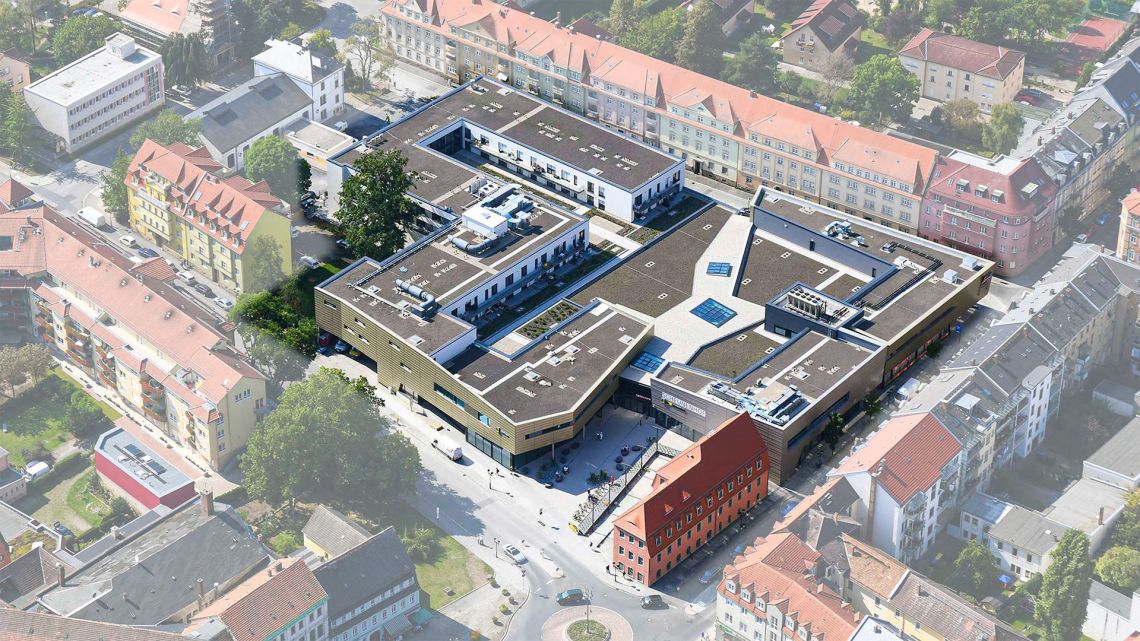 EDEKA Sachsen-Thüringen-Nordbayern errichtete am Rande der Altstadt Pirna auf dem Quartier Robert-Koch-Straße, Bahnhofstraße und Hospitalstraße ein neues Einkaufszentrum mit Läden im Erdgeschoss, Büro- und Praxisräumen im 1. Obergeschoss sowie einer seniorengerechten Wohnanlage.