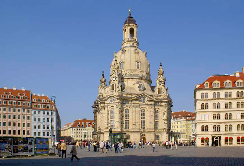 In den Jahren 1726 bis 1743 entstand der berühmte Kuppelbau George Bährs, der zweihundert Jahre das Stadtbild Dresdens prägte. Kurz vor Ende des Zweiten Weltkrieges wurde die Frauenkirche infolge Brandeinwirkung zerstört. Ihre Ruine verblieb als Trümmerberg mit ca. 70x80 m Grundrissabmessung und 17 m Höhe sowie zwei 30 m hoch ragenden Bauwerksteilen im Herzen der Stadt. Vor dem Wiederaufbau erfolgte unter Leitung des Büros Prof. Jäger ab 1991 die Planung und Durchführung der archäologischen Enttrümmerung mit zielgerichteter Beräumung des Trümmerberges und Zwischenlagerung wieder verwendbarer bzw. für die Neuplanung bedeutsamer Bauteile.